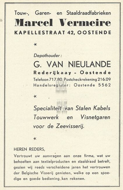 ADVERTENTIES ; SCHEEPSUITRUSTINGEN