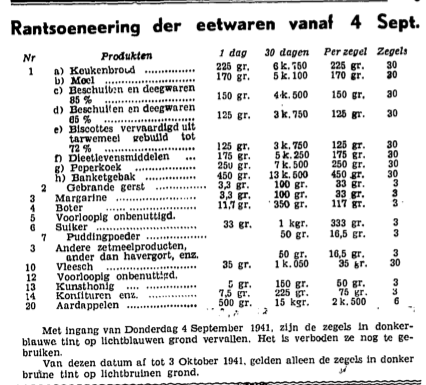 Advertentie : Rantsoenering der eetwaren vanaf 4 sept. [1941]