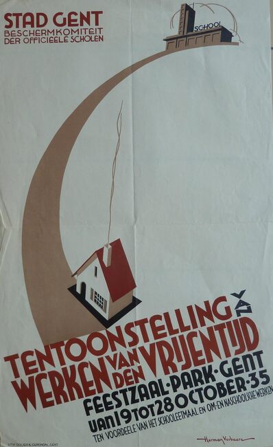 Formaat : 62 x 38 cm. - Beschermkomiteit der officieële scholen. - Ontwerp : Herman Verbaere