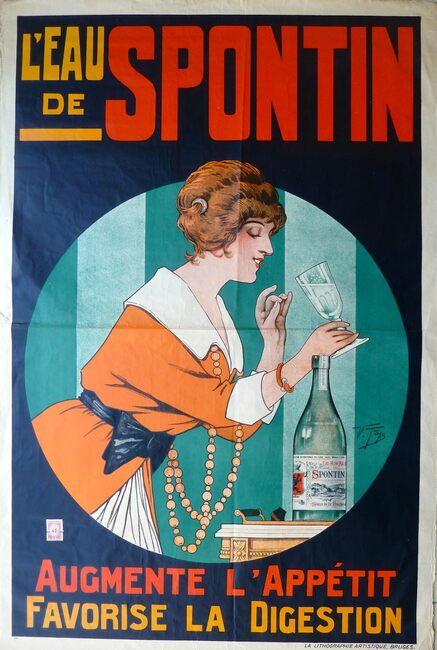 Formaat : 100 x 66 cm. - Exterieuraffiche "Elixir d'Anvers" voor stokerij De Beukelaer, Antwerpen 1900. - Ontwerp : H.B. Mauquoy. - Nota's beschikbaar in pdf