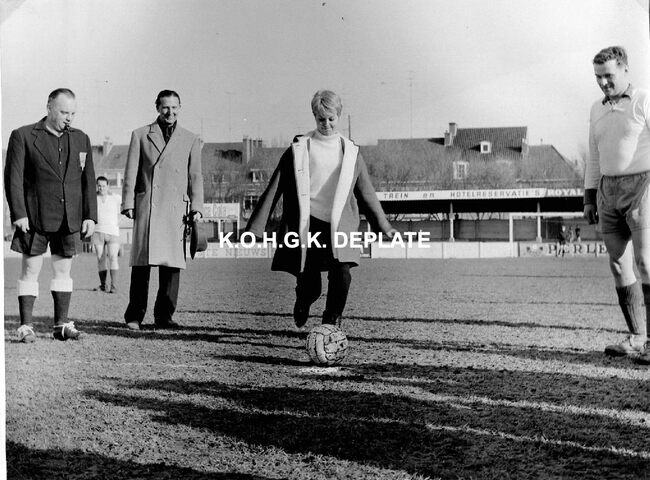 Formaat : 17 x 23 cm. - In het kader van de Nacht van de Pers werd in het Albertpark een voetbalmatch gespeeld tussen de journalisten van twee bekende Brusselse kranten. De Franse actrice Mylène Demongeot mocht de aftrap…