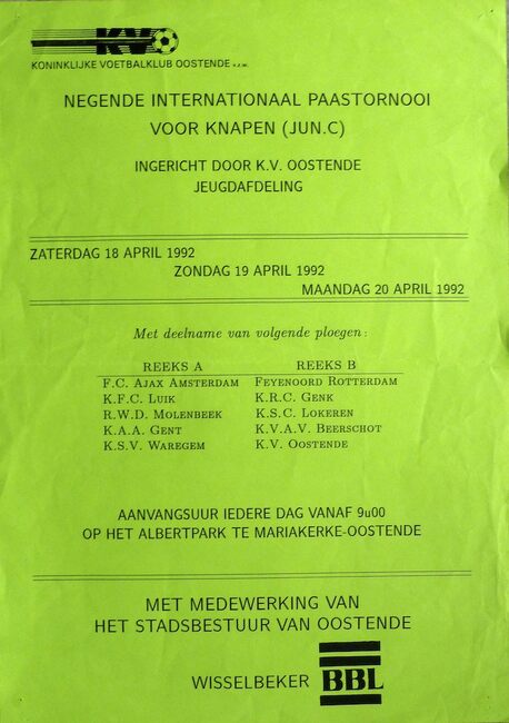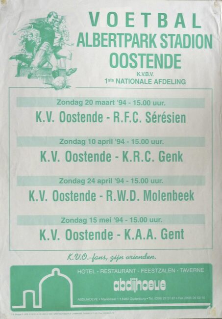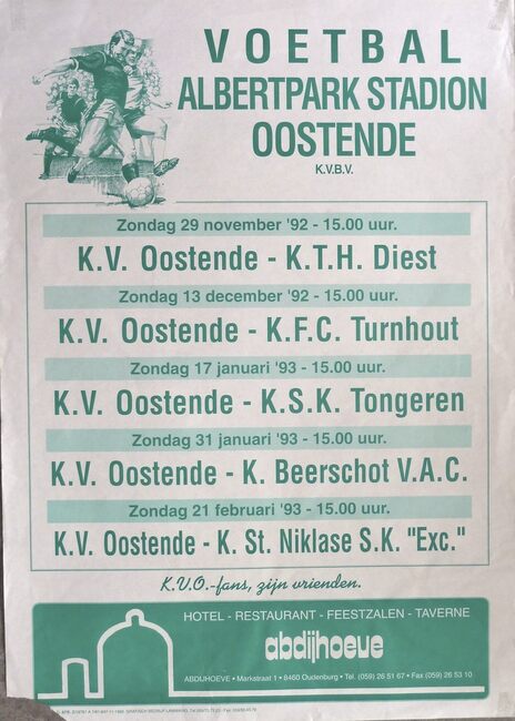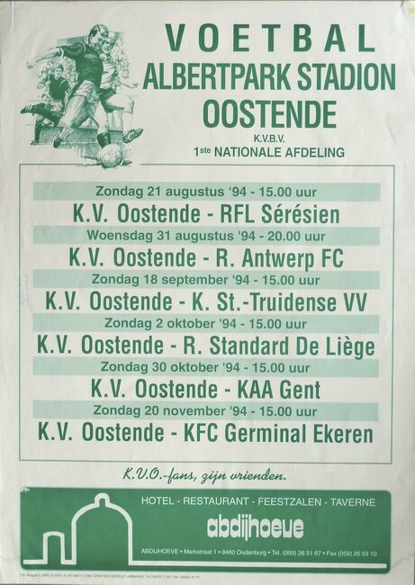 Negatief.- Een voetbalwedstrijd in het Albertpark. Op de achtergrond is de gasketel aan de Steense dijk te zien. A.S.O. staat voor Association Sportive Ostendaise, ze kreeg in 1937 haar koninklijke titel en de naam…