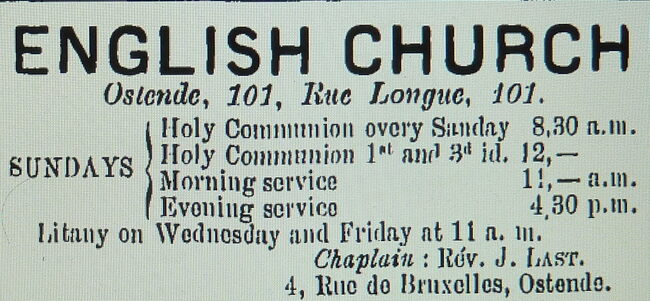 Formaat : 21 x 15 cm. - Anglicaansekerk. Langestraat 99-101. "The English Church", bedehuis voor de Anglicaanse eredienst naar ontwerp van architect F. Laureys (Oostende). Opgetrokken in 1863-1864 op de plaats…