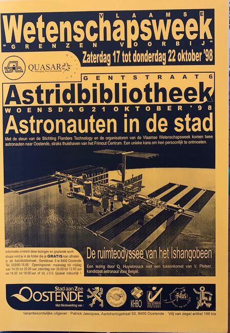 Formaat : 42 x 30 cm. - Astronauten in de stad (11/10/1998). De ruimteodysse van het Ishangobeen : een lezing door D. Huylebrouck met een tussenkomst van V. Pletser, kandiaat astronaut voor België.