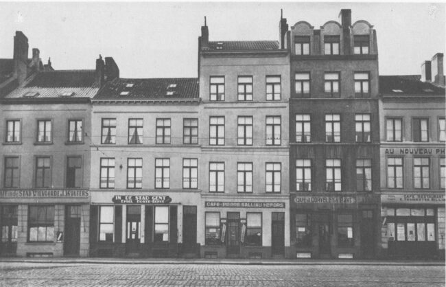 Tweede gedeelte van de huizenrij, tussen het Vissersplein (links) richting Nieuwstraat (rechts). Op de foto van links naar rechts : Het Café In de Stad Vilvoorde (1),…
