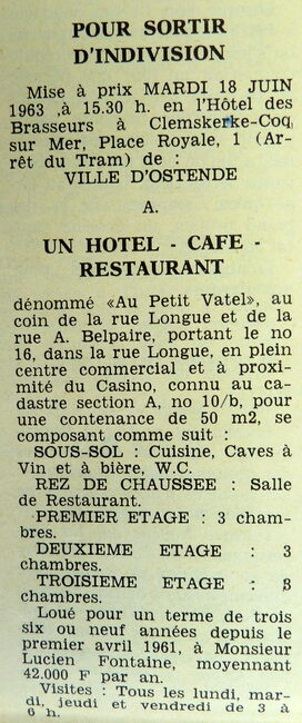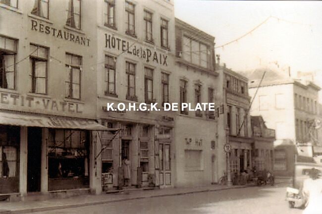 Formaat : 15,5 x 23,5 cm. - De Langestraat. Links, op de hoek met de Antoon Belpairestraat, het hotel café restaurant "Au Petit Vatel". Wat verder, rechts, op de hoek met de Hertstraat, de dancing "Casanova…