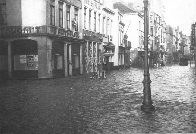 Formaat : 12 x 17 cm. - Rechts het gedeelte gezien vanaf de Madridstraat met dancing "Casanova" op de hoek van de Hertstraat en wat verder cinema "Rialto". Links op de hoek met de Antoon…