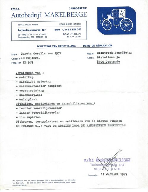 Formaat : 18 x 24 cm. - Garage-carosserie L. Makelberge en bandencentrale Cam. Beudaert aan de Torhoutsesteenweg 485.