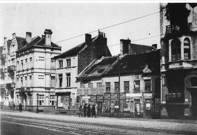 Gedeelte van de Werfstraat gezien vanaf de Jozef II-straat richting Wittenonnenstraat. Het huizenblok links op de foto werd, samen met nog andere gedeelten van de Werfstraat omstreeks 1905 gesloopt voor de aanleg van de…