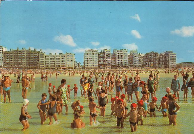 Photo-Hall. - Pootjebaden nabij het Groot Strand. Op de achtergrond de appartementen langs de Albert I-pormenade