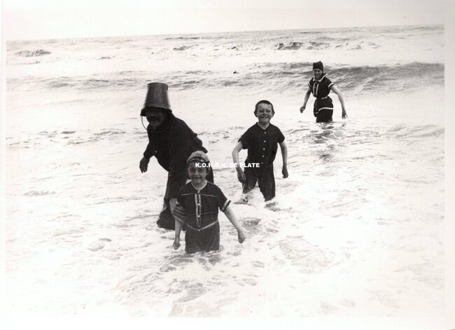 P.I.B. 90 [Phototypie Industrielle Belge], 93, rue de Courtrai, Bruxelles. - La Plage Belge - Un qui ne veut rien savoir. De kleinste is blijkbaar bang van het water.