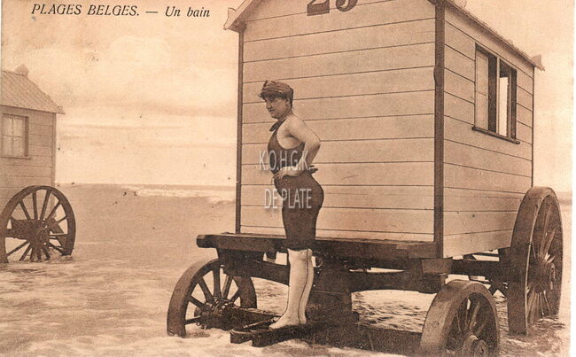 Formaat : 9 x 14 cm. - PLAGES BELGES. - Un bain. - Eerst omkleden in de badkar en dan een bad nemen in zee