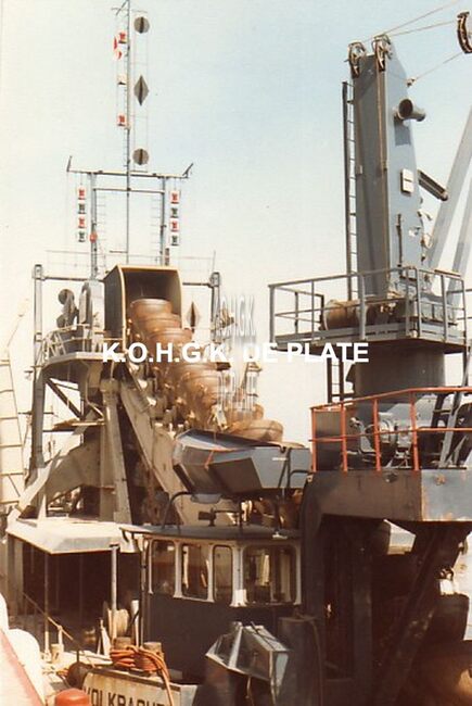 Formaat : 14 x 8 cm. - Emmerbaggermolen "Volkracht II" werd gebouwd te Kinderdijk in Nederland in 1967 als "Marsdiep". En werd eigendom van Baggerwerken Decloedt en zonen in 1975…