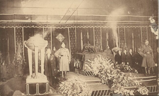 N°8. Le Roi Albert et le Prince Léopold saluent avec émotion la glorieuse dépouille de leur camarade de combat, le Soldat Inconnu. - Map 029A/63h