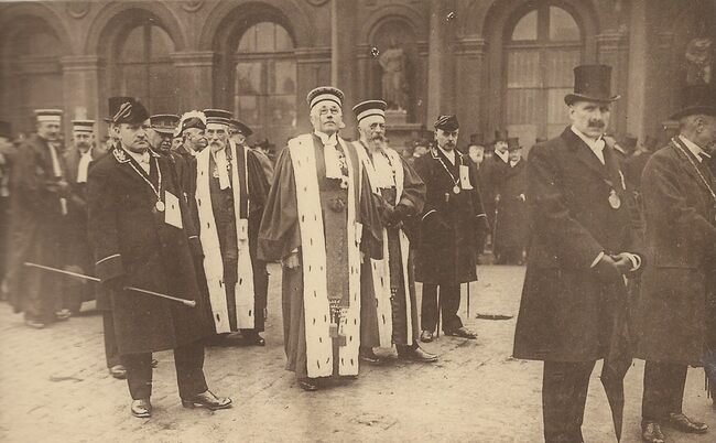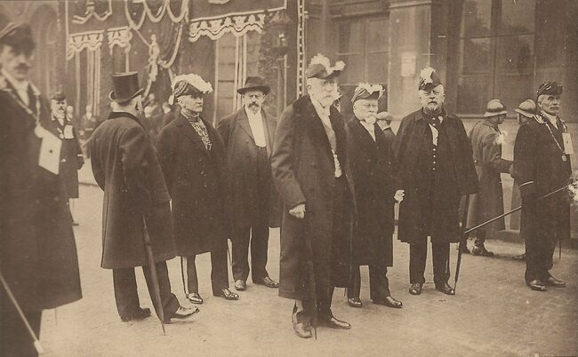 N°4. Voici les plus hauts magistrats du pays, qui ont tenu à participer ; en grand costume, à l'apothéose du Soldat Inconnu. - Ook de magistratuur is aanwezig - Map 029A/63d