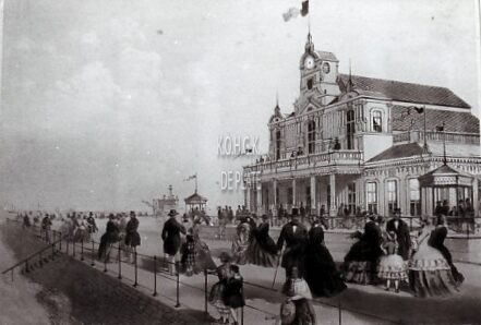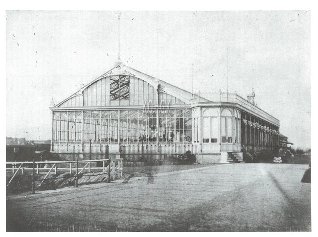 Foto z/w 13 x 9 + negatief. Het eerste kursaal, gebouwd in de periode 1851-1852, naar de plannen van architect Henri Beyaert. Gelegen op de buitenste vestingswal tussen de hellingen van de Vlaanderen- en Christinastraat.…