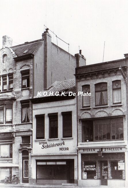 Foto 8.5 x 12.5. Café, Mijnplein 10, uitgebaat door mevrouw Ferier. Opschrift : Bieren Stacegem. Van "Brasserie de Staceghem" uit Stasegem. Links woning Mijnplein 8.