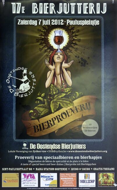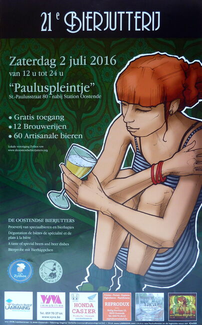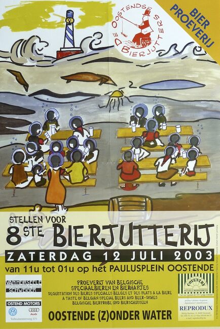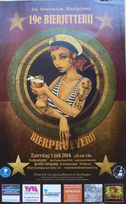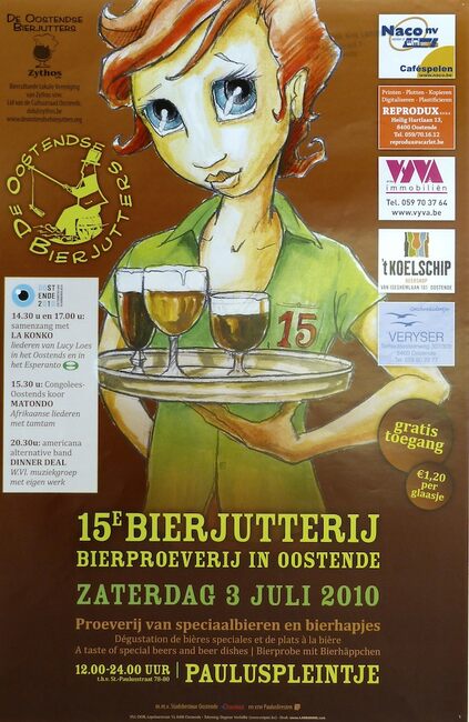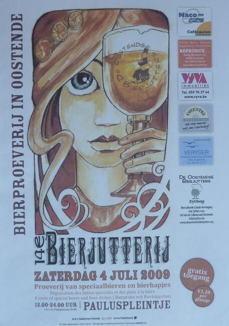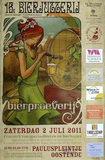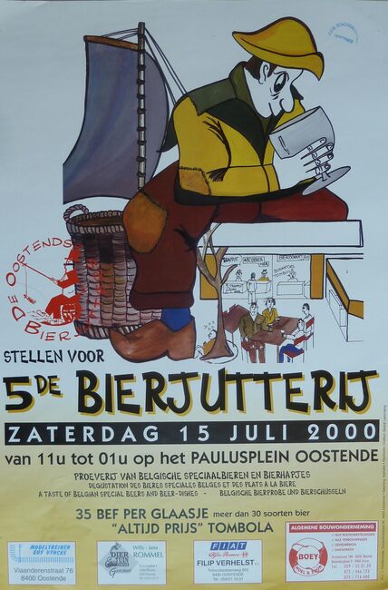 Een reclamevrachtwagen voor Vondel bier, van brouwerij Vondel uit Meulebeke, in de zomercavalcade in de Driftweg te Bredene.