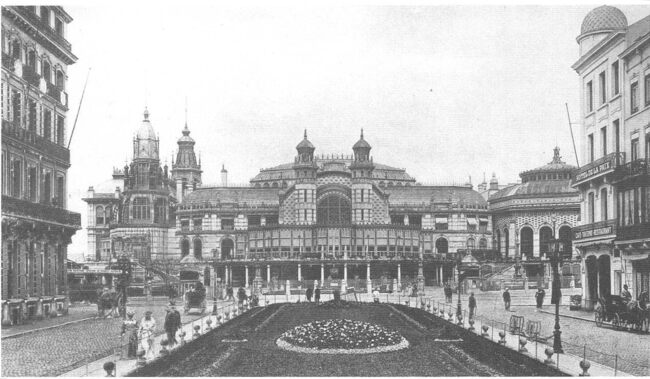 De zuidgevel van het vierde Kursaal gezien vanuit de Leopoldlaan. De sierlijke lantaarns zijn nog niet verdwenen want de Leopoldlaan is nog niet doorgetrokken door het Leopoldpark. Vanaf 6 februari 1956 wordt de…
