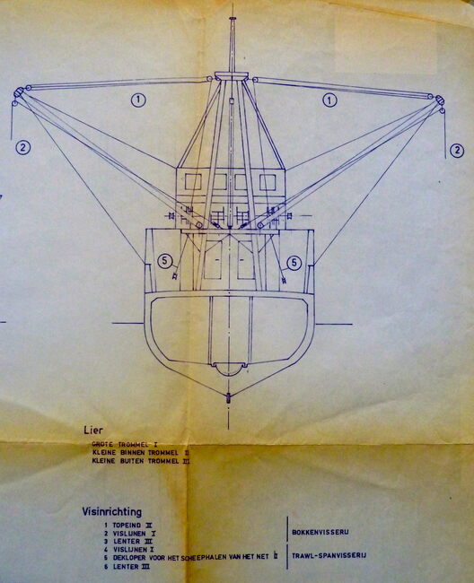 Plan : scheepsbouw : zijtrawler uitgerust met A-bokken