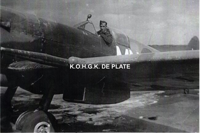 Afdruk. - Formaat : 19 x 28,5 cm. - Gelegenheidsfoto van RAF Borrey Raymond in een jachtvliegtuig.