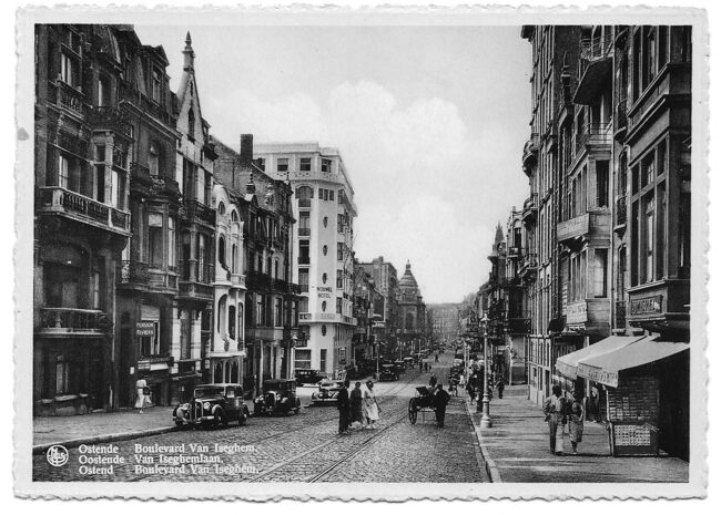 Nels Bromurite. Ostende - Boulevard Van Iseghemlaan. Oostende - Van Iseghemlaan. Ostend - Boulevard Van Iseghem. - Tekst met voorbehoud : Het begin van de Van Iseghemlaan richting de Koninklijke Schouwburg, links op het…