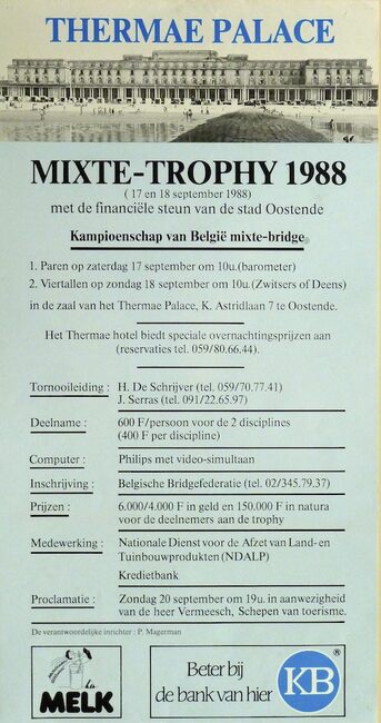 Affiche : Mixte-Thophy 1988. Thermae Palace. 17 en 18 september 1988.