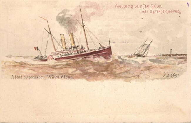 . Postwaardestuk 5 cent. - Paquebots de l'Etat Belge Ostende-Douvres. Belgische Staatspaketboten Oostend-Dover. Beglian State Packet BoatsDover-Ostend. Belgische Staats Postdampler Ostende-Dover. - Aan boord…