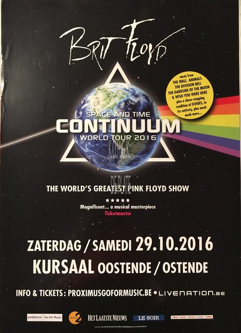 Affiche : Brit Floyd. Space and time world tour. Kursaal Oostende. Op 29 oktober 2016