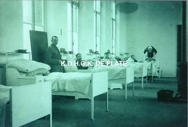 Formaat : 18 x 24 cm. - Het militair hospitaal werd eind november 1914 gesloten en het Burgerlijk Hospitaal werd samen met het Hôtel des Thermes omgevormd tot Marine-Feldlazarett Nr.4. Op 1 juli 1917 werd dit lazaret…