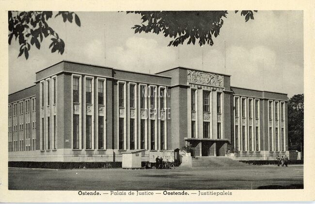 Delacauw-Stellemans. - Ostende - Palais de Justice. Oostende - Justitiepaleis. Het Canadaplein met het gerechtsgebouw begin de jaren vijftig. De Leopold II-laan was toen nog niet doorgetrokken.