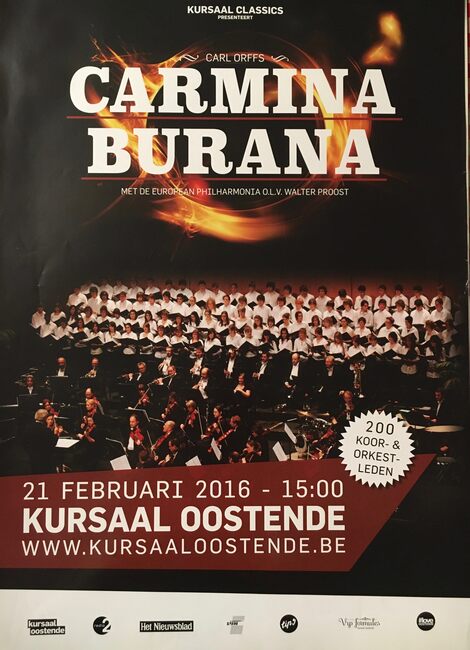 Affiche : Carl Orff. Carmina Burana. European Philharmonia o.l.v. Walter Proost. Kursaal Oostende. 21/02/2016