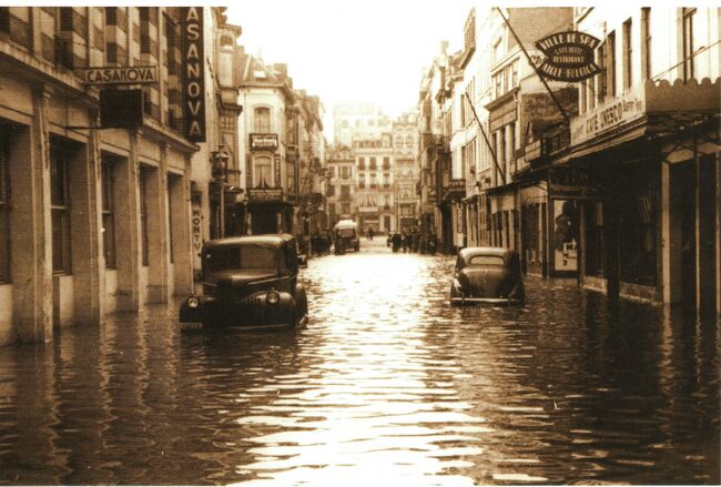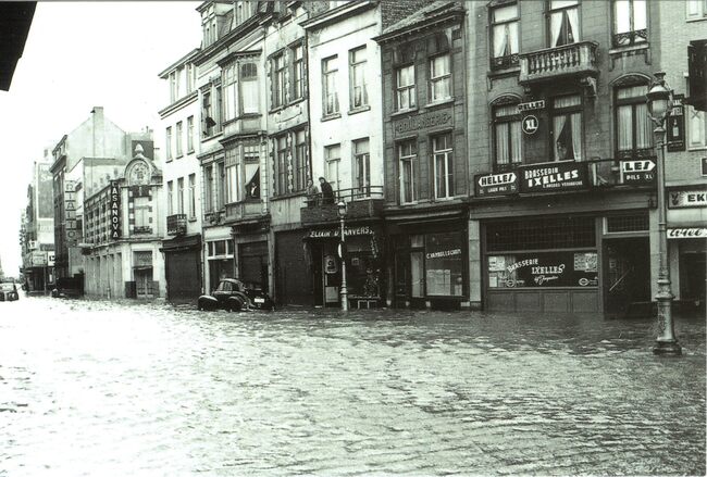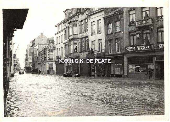De Langestraat met rechts de Hertstraat onder water na de grote overstroming van 1953.Naast de Casanova op de hoek van de Hertstraat,de cinema's Rialto en Corso.Op de volgende hoek (Christinastraat) de zeer gekende…