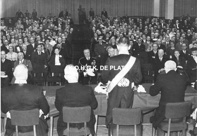 FOTO MICHAEL (HENDRIK SERRUYSLAAN)CASINO-KURSAAL (1953) ; OFFICIËLE OPENINGVAN GLABBEKE ADOLPHE (1904-1959) (BURGEMEESTER)ROBINS LAMBERT (1901-1980) (DIVISIEADMIRAAL ZEEMACHT)PIERS JAN (1920-1998) (BURGEMEESTER)QUAGHEBEUR MAURICE CHARLES (1911-1975) (NOTARIS SCHEPEN)DEHOUCK KAMIEL (1908-1992) (POLITICUS)