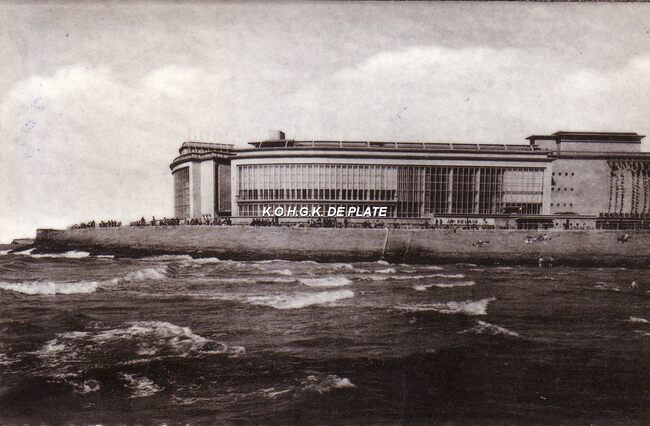 Postkaart Best. - De westgevel van het vierde Kursaal gezien vanaf het Groot Strand