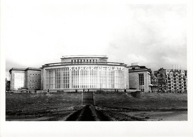 Formaat : 13 x 18 cm. - De noordgevel van de vierde Kursaal langs de Albert I-promenade, gezien vanaf een golfbreker op het Groot Strand.