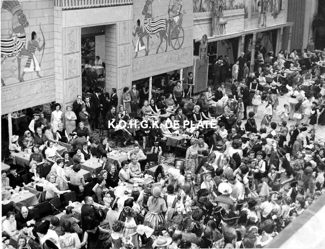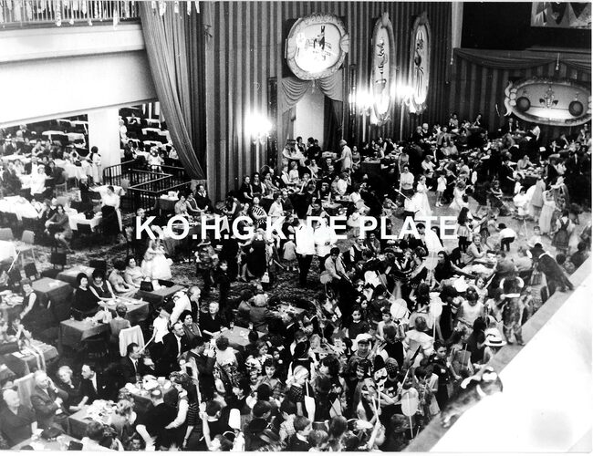 Formaat : 18 x 24 cm. - In de erehall in de decors van het Bal du Rat Mort "Cleopatra in Roma"