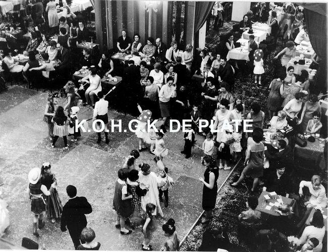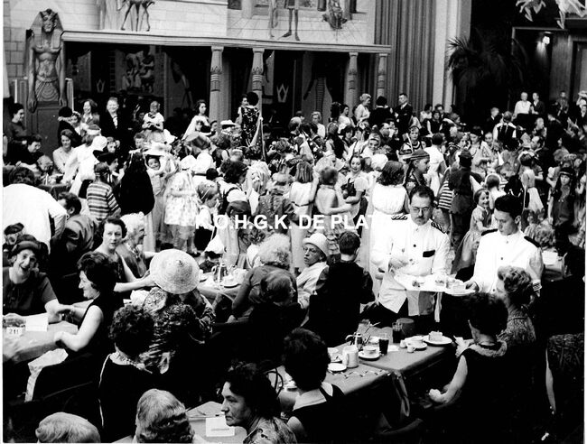 Formaat : 18 x 24 cm. - In de erehall in de decors van het Bal du Rat Mort "Cleopatra in Roma".