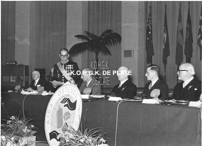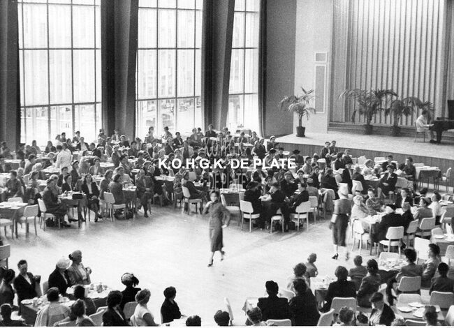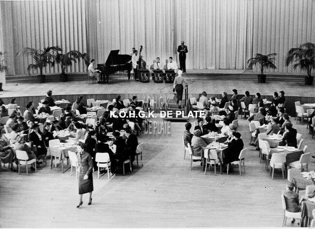 Formaat : 12,5 x 12,5 cm. - Hier in de ridderzaal van het Casino-Kursaal Negatief : Formaat : 6 x 5,5 cm. - FOTOARCHIEF 202 FOTO LUC 0 DOOS 41 ROL 10