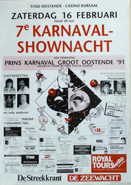 FEYS FREDDY (MUZIKANT)(OOSTENDSE REVUE)RABAU WERNER (AUTEUR TONEELREGISSEUR) (OOSTENDSE REVUE)MOERMAN HERMAN (1930-2013) (JOURNALIST) (TJEPPEN KROTTE)KONINKLIJKE BALLETSCHOOL ROSE D'IVRYDANGREAU GERARD (1930-2006) (PETTE SJIEKE) (OOSTENDSE REVUE)OOSTENDSE REVUE (NAAM)E WE DA'K ZEGGEN (REVUE)?CASINO-KURSAAL ; EVENEMENTEN