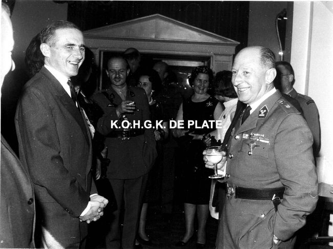 Formaat : 18 x 24 cm. - Kolonel Charles Laurent krijgt veel felicitaties. Zittend, schepen John Lauwereins.