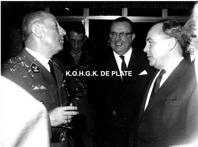 Formaat : 18 x 24 cm. - Kolonel Charles Laurent in het gezelschap van o.a. Pierre van Outryve d'Ydewalle, gouverneur van de Provincie West-Vlaanderen (links).