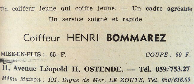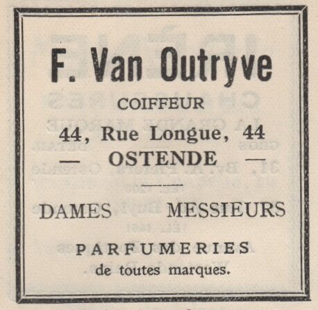Formaat : 4,7 x 8,5 cm. - Polsenaere-Tulpinck, Coiffeur, Rue Flamande N° 37 Bruges, Rue du quai 59 Ostende.