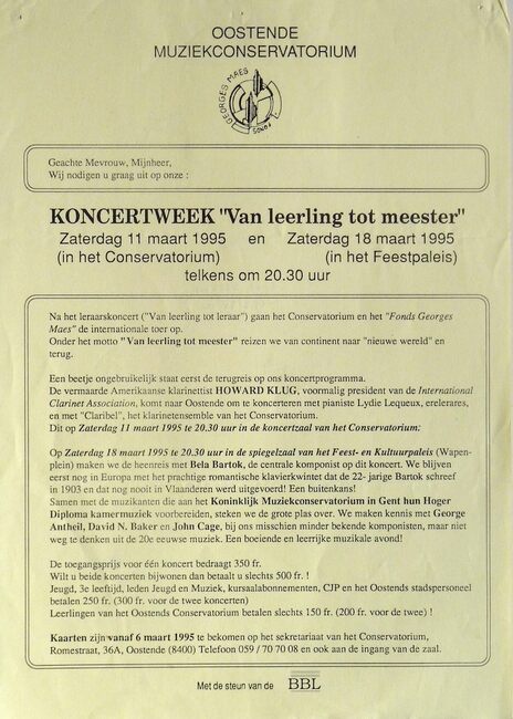 Naar aanleiding van het Eeuwfeest van het Conservatorium van Oostende