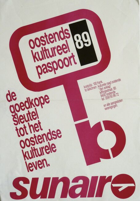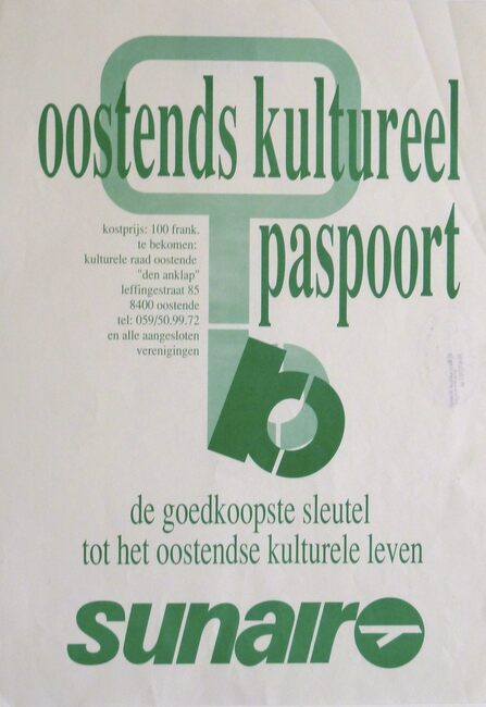 Affiche : Kulturele Raad Oostende. Oostends kultureel paspoort. Oostende. 1989