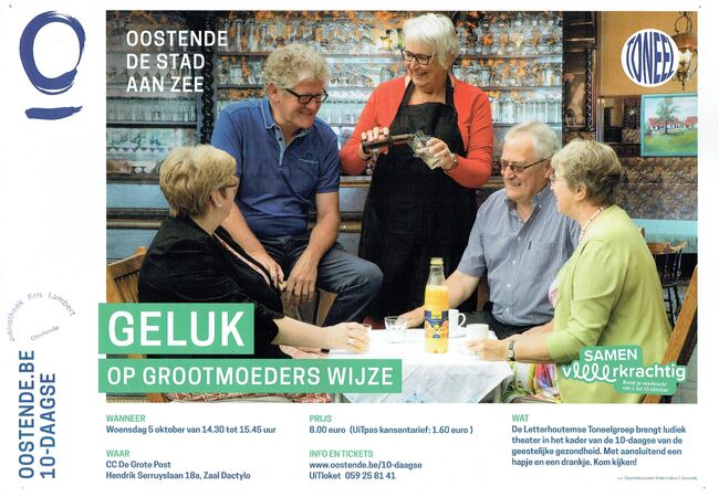 Formaat : 30 x 42 cm. - De Letterhoutemse Toneelgroep brengt ludiek theater in het kader van de 10-daagse van de geestelijke gezondheid. Met aansluitend een hapje en een drankje. Kom kijken!