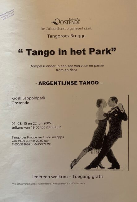 Tango in het park. 06, 13, 20, en 27 juli 2007. Kiosk Leopold- park 19. 30 - 23. 30.
