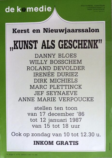 Affiche : Kerst en Nieuwjaarssalon. "Kunst als geschenk." De Komedie. 17 december 1986 tot 12 januari 1987.