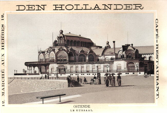 Formaat : 10 x 14,5 cm. - Met foto van de westgevel van het tweede kursaal langs de Zeedijk tijdens de Belle Epoque