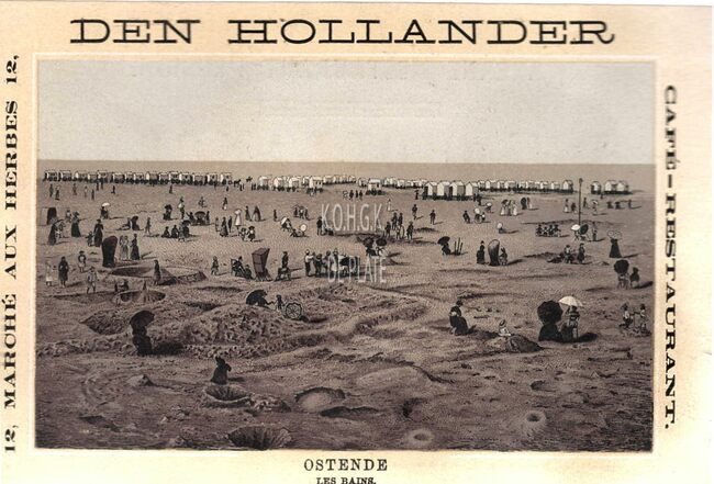 Formaat : 10 x14,5 cm. - Met foto van strandrecreatie op het Groot Strand tijdens de Belle Epoque. Langs de vloedlijn, de traditionele badkarren
